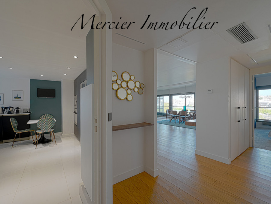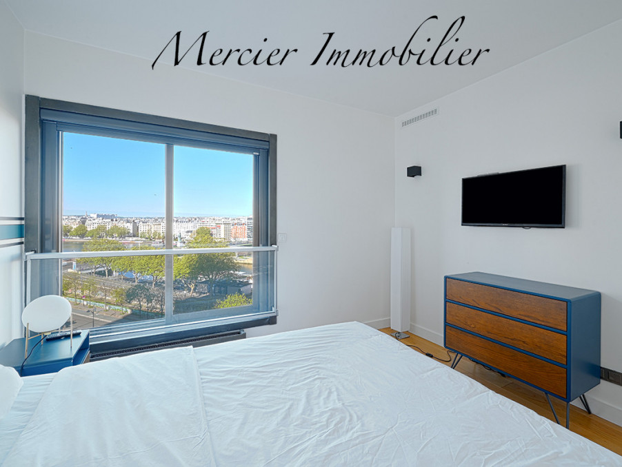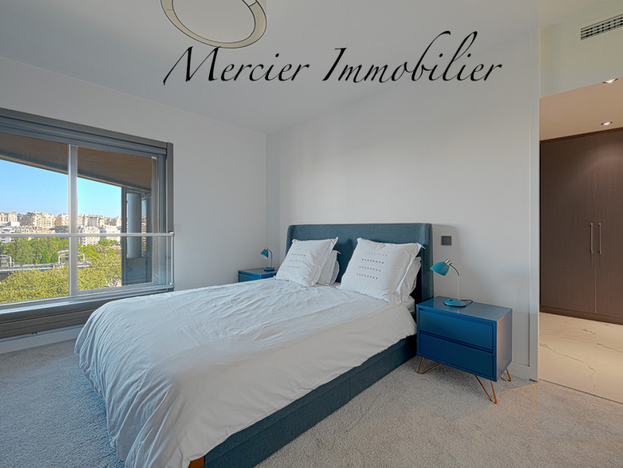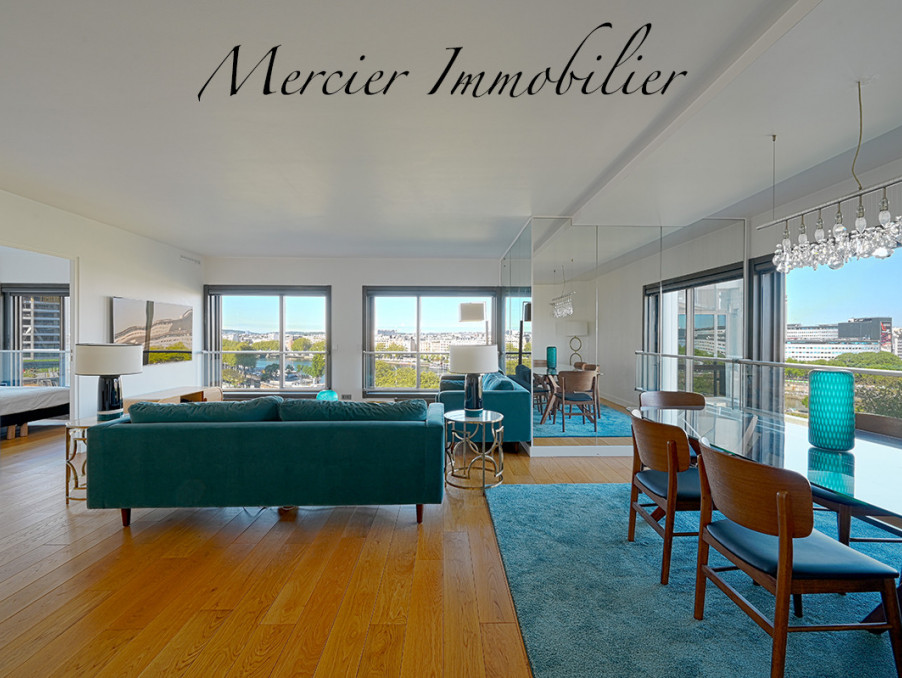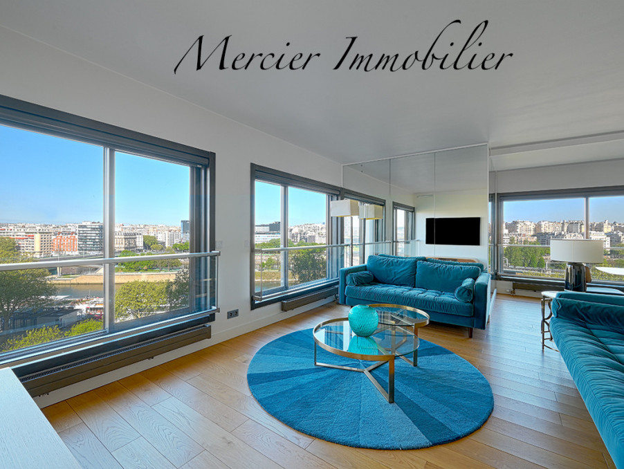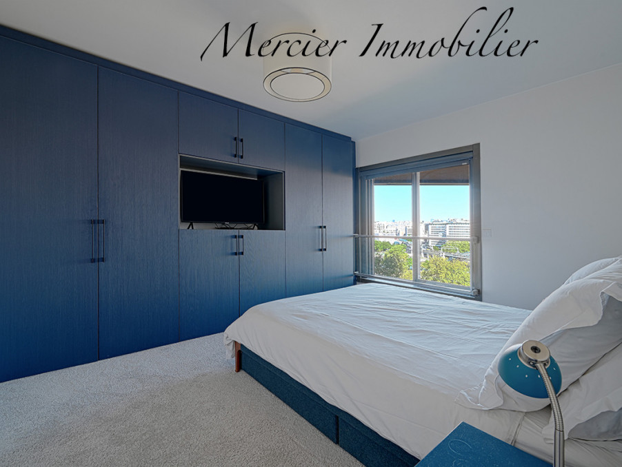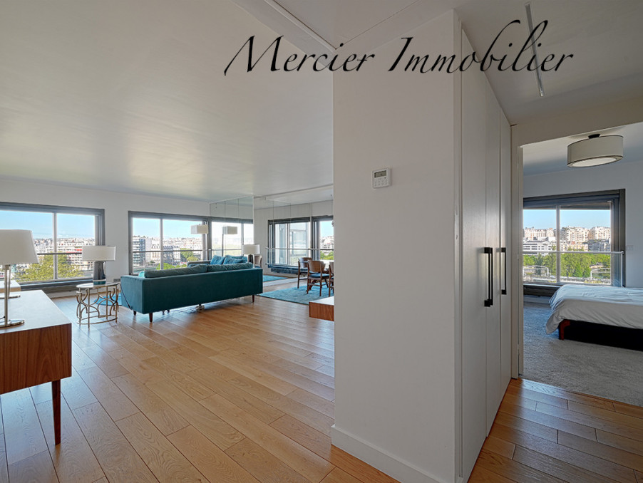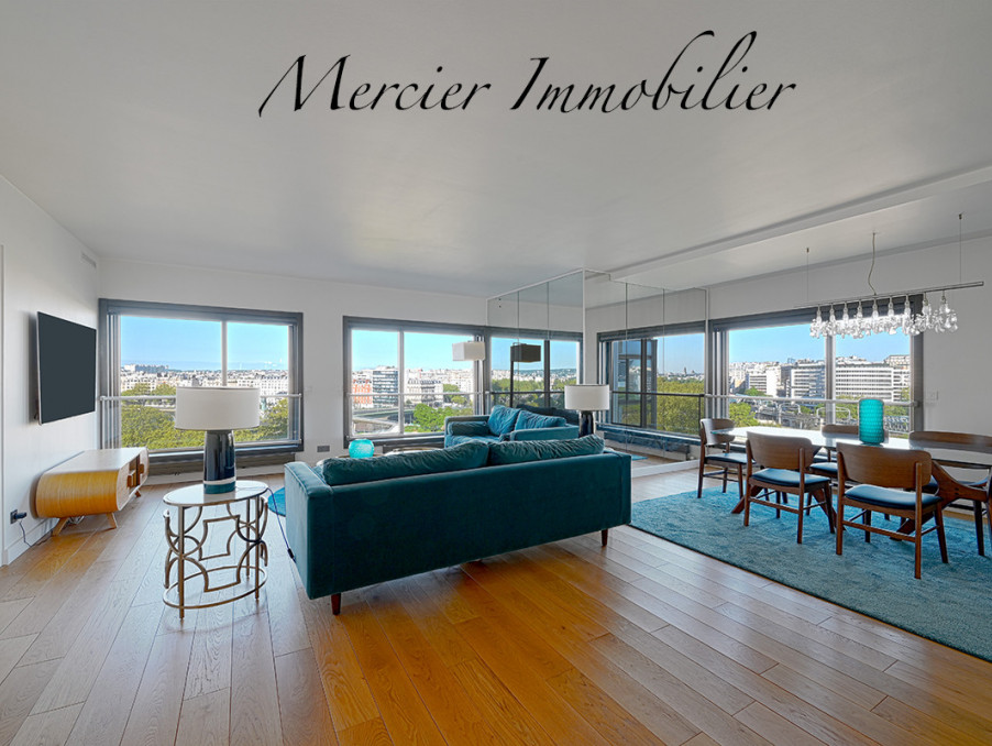 Quai de Grenelle face à la Maison de la Radio, vue panoramique sur Seine lumineux et luxueux appartement d'exception (matériaux de grande qualité) et de standing de 125,04m2 loi carrez, situé dans une des Tours les plus prisées du Front de Seine, proche centre commercial Beaugrenelle, transports et écoles (bilingue). Immeuble sécurisé avec gardiens 24h/24h.