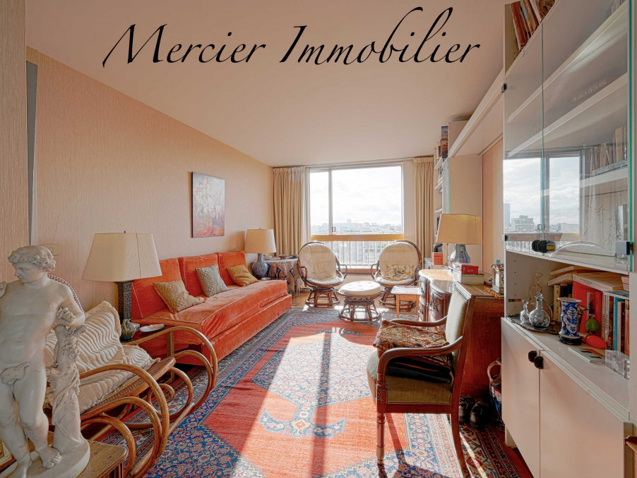 A quelques pas de la Tour Eiffel et à proximité du centre commercial Beaugrenelle, 4 pièces d'angle lumineux de 96,20m2 loi carrez, vue sur Paris, larges baies vitrées. Immeuble sécurisé avec gardiens 24h/24h.