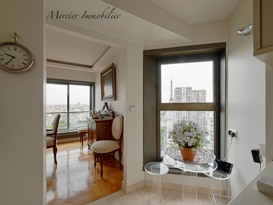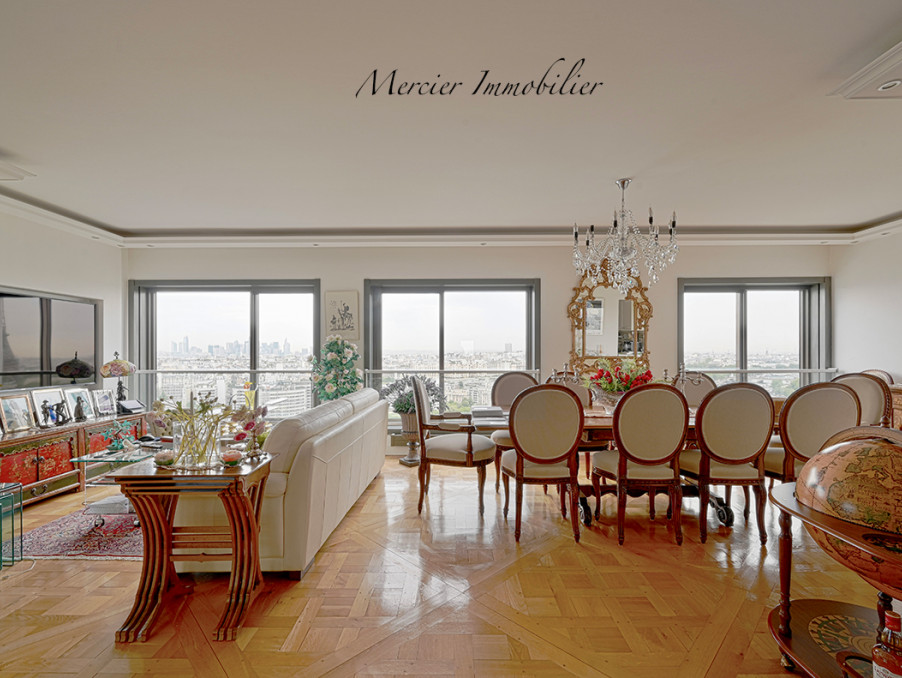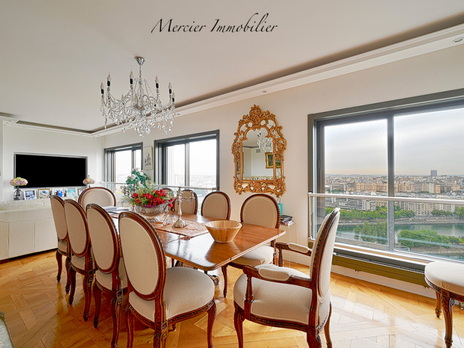 Vue aérienne sur Seine et Tour Eiffel pour ce 5 pièces d'exception baigné de lumière en parfait état. Proche toutes commodités (écoles, transports, commerces, Beaugrenelle ses restaurants et cinémas), immeuble sécurisé avec gardiens permanents.
